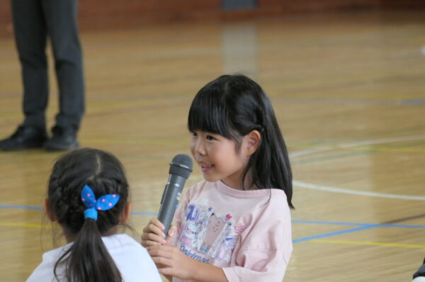 学校の体育館に着くと先生やお兄さん、お姉さんが優しく迎えてくださいました。天使幼稚園出身の子も沢山いましたよ。