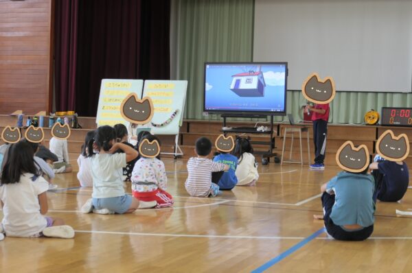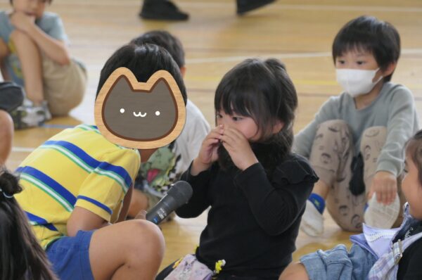 楽しく遊んだ後は、感想を発表しました。「感想を発表してくれる人!」の声にたくさんの手が上がり、立派に堂々と発表する姿は、もう1年生みたいでしたよ。「たのしかった」と伝える声に学校のお友達の「わーい!😄」と嬉しそうな声も聴くことができました。