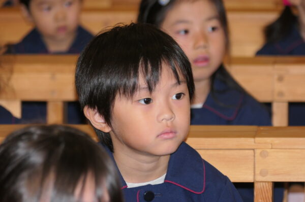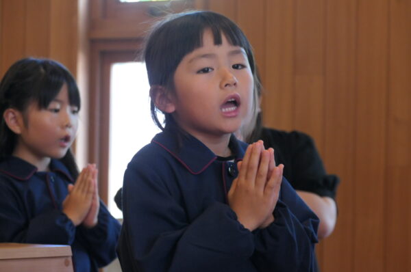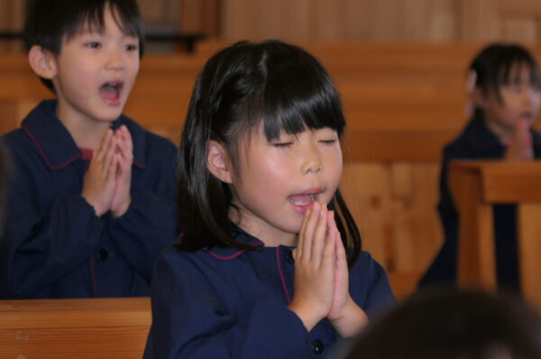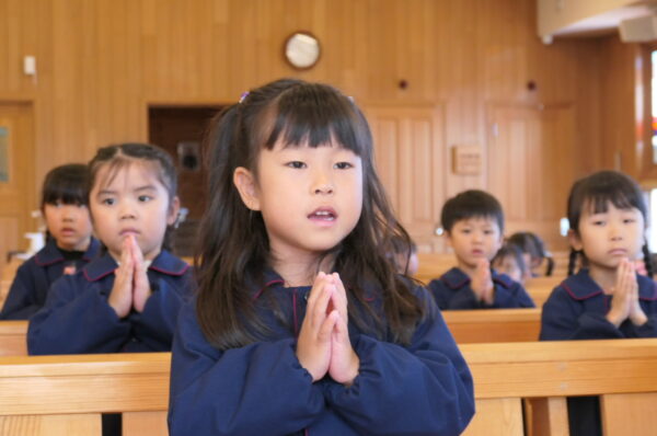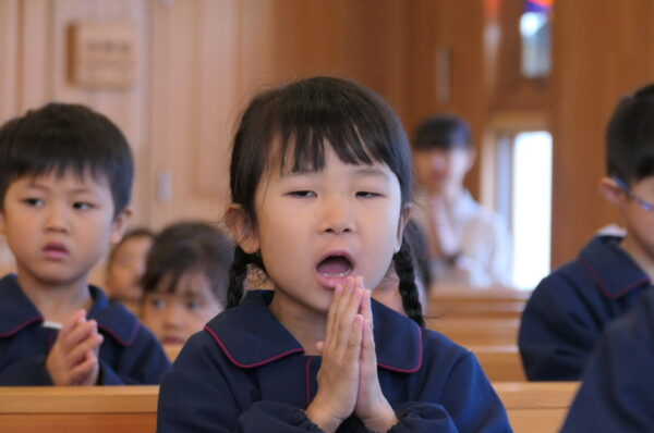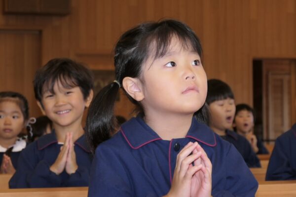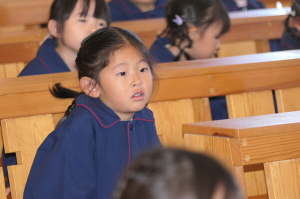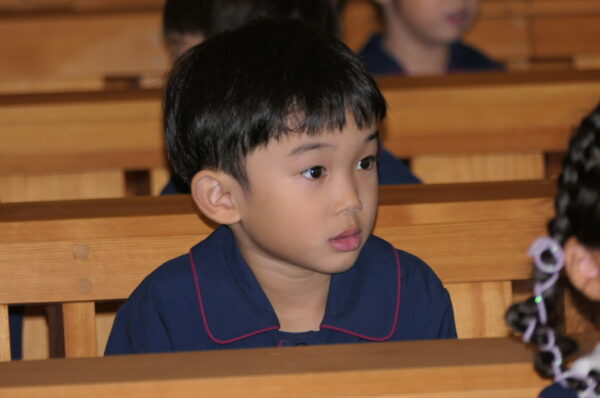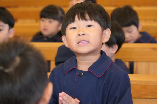 沢山練習してきた共同祈願は、お友達と心を合わせて「家族・世界・友達」へ向けて祈りを捧げました。