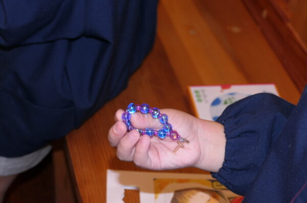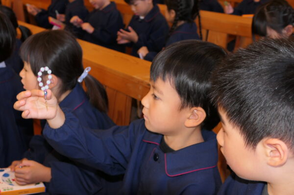 最後にはロザリオの祝別をしてもらい、目を輝かせていたA組さん。