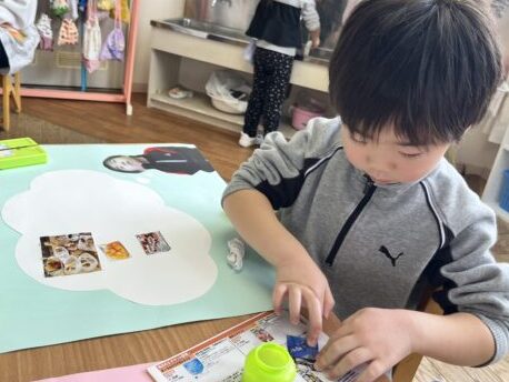 B組さんの横割りでは、コラージュ製作を行いました!