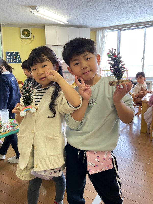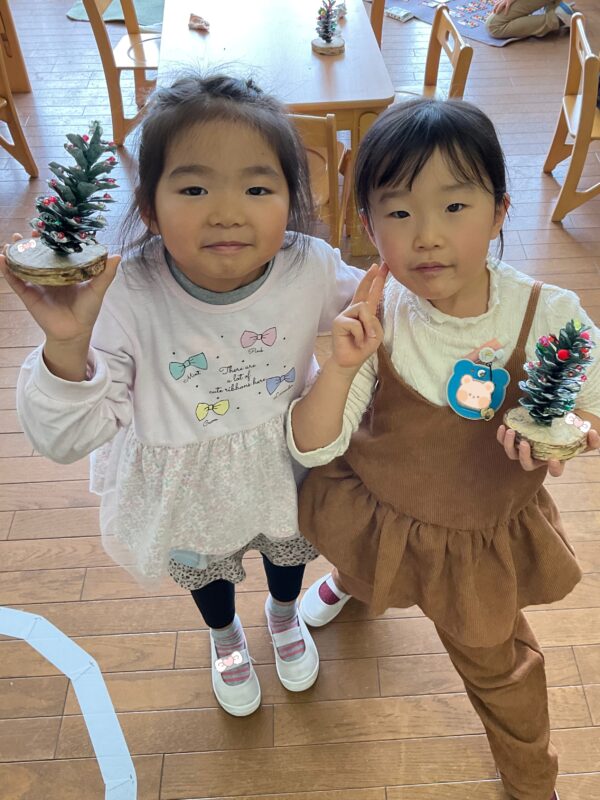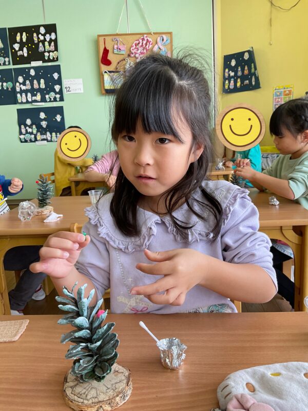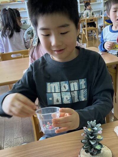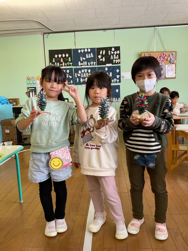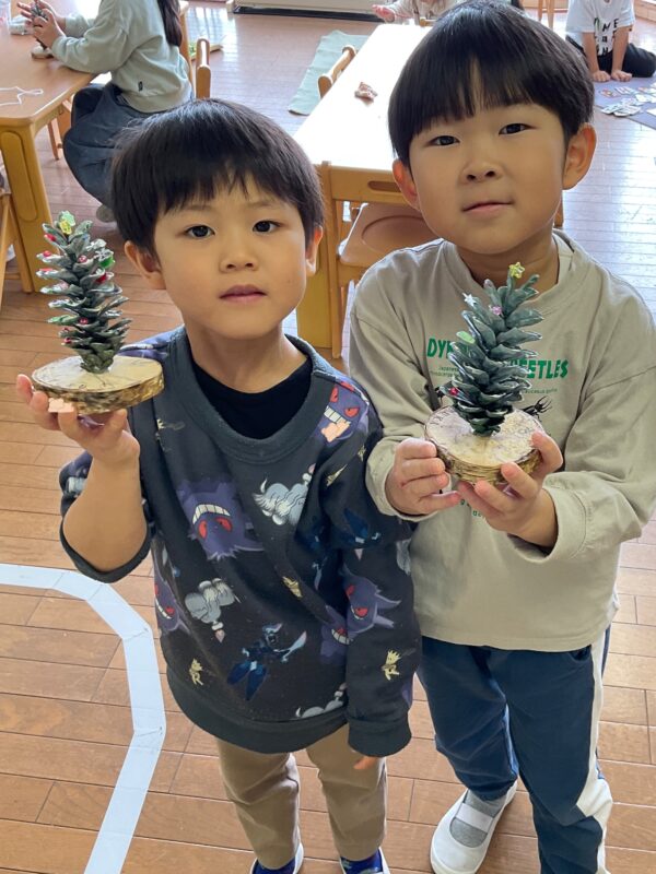 そして、松ぼっくりのクリスマスツリー製作を行いました🎄